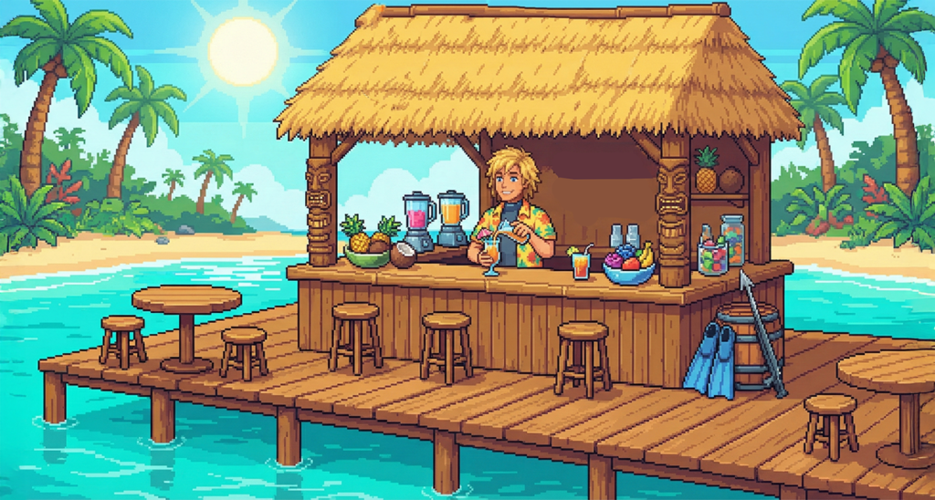 Step into a vibrant tropical paradise in Hue and Brew! Manage your own seaside bar, craft exotic drinks, and master the art of mixology in this cozy pixel-art adventure. Relax, brew, and serve the perfect vacation vibes.